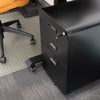 Sitting comfortably below any desk, this pedestal features a soft-close top drawer and a bespoke bottom drawer for storing folders and papers. Rounded edges and corners help prevent injury if you accidentally catch the unit with your leg or foot while seated. All three drawers are lockable with one key, and the unit is available mounted on casters for easy movement or can remain stationary using optional leveling glides. This sleek mobile filing pedestal cabinet is the perfect under desk storage solution